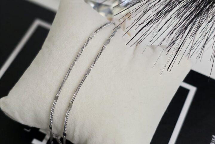 Ses maillons délicats jouent subtilement avec la lumière, créant un rendu raffiné aussi bien porté seul qu’associé à d’autres bijoux.